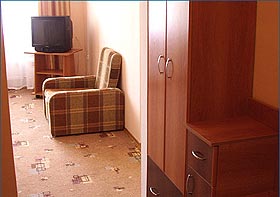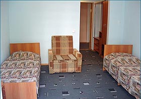 "Люкс" 2-местный 2-комнатный (два доп. места) - санузел с душем, телевизор, холодильник, кондиционер, балкон.