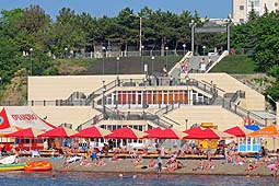 Пляж: галечный, в 50 м от санатория, в 100 метрах спуск к морю. На берегу: виндсерфинг, подводное плавание с аквалангом, водные лыжи, катание на яхтах, теплоходах.