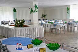 3-х местный стандартный номер. В номерах: душ, туалет, ТВ, холодильник; 2-х местный комфортный номер. В номере: душ, туалет, ТВ, холодильник, кондиционер, лоджия; 2-х местный 2-х комнатный номер повышенной комфортности. В номере: душ, туалет, ТВ, холодильник, кондиционер. Питание: 3-х разовое питание «шведский стол» + два фуршета в перерывах между основным питанием: прохладительные безалкогольные напитки, чай, кофе, легкие закуски, кондитерские изделия. Водоснабжение: холодная и горячая вода постоянно. К услугам отдыхающих: столовая, библиотека, бар, дискоклуб, бильярд, сауна с бассейном, анимация. Спорт: бассейны взрослый и два детских, тренажерный зал, спортивные площадки, теннис, прокат спортинвентаря. Детям: детская игровая комната с настольными играми и инвентарем для подвижных игр.