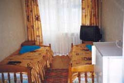 2-х местный «эконом» (~ 12 кв.м) с удобствами (душевая кабина, умывальник, туалет), в номере 2 кровати, телевизор, холодильник, балкон, кондиционер, телефон. Доп. мест – нет.