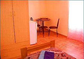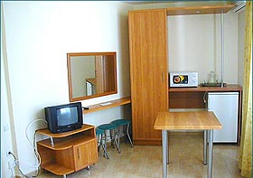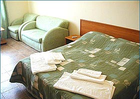 "Полулюкс" 2-местный 1-комнатный (одно доп. место) - совмещенный санузел с ванной, телевизор, холодильник, кондиционер, диван.