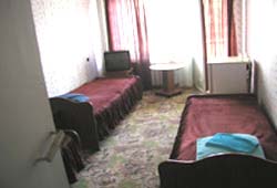 2-х местный номер 1 категории с удобствами (~ 12 кв.м.) - санузел (ванна, туалет, умывальник), телевизор, холодильник, две 1-спальные кровати, лоджия. Доп. место - 1.