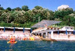 Сервис: оборудованный собственный пляж длиной 150 м – в 250 м (10 мин ходьбы, обратно-15 мин, через подземный переход под авто- и железной дорогой); на пляже: аэрарий, навес, медпункт, душ, туалет, бар, дискотека, спасательная служба, причал, прогулочные лодки, катер, прокат водных велосипедов, скутеров, водные развлечения.