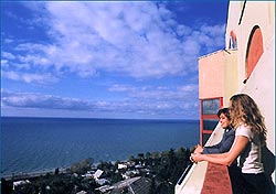 Сервис: пляжный комплекс (аэрарии, лежаки, раздевалки, душевые), столовая, кафе, бар – бильярдная, караоке, киноконцертный зал на 400 мест, тренажерный зал, библиотека, открытая танцевальная площадка, пункт проката, камера хранения, междугородняя связь, автостоянка, доставка авиа и ж/д билетов. Работа аниматоров, дискотеки, организация экскурсий, предоставление под заказ автотранспорта с водителем.