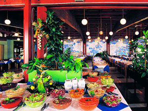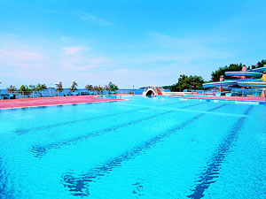 ресторан, пиццерия, пивная, аперитив-бар, парикмахерская, видео-зал, терраса для танцев, ночная дискотека под живую музыку, бассейны, пристань для спортивных лодок, виндсерфинг, прокат каноэ и водных лыж, школа тенниса и дайвинга, теннисные корты, площадки для игры в крокет, гандбол, волейбол, баскетбол и настольный теннис, французский боулинг, тир, прокат велосипедов, пляжный волейбол, магазины, автостоянка, медпункт. Днем и вечером проводятся развлекательные программы для детей и взрослых.