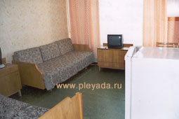 4-х местные 2-х комнатные стандартные номера. В номере: душ, туалет, ТВ, холодильник, в одной комнате две кровати, в другой комнате – два дивана;