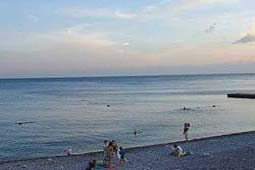 Пляж: в 50 м от базы отдыха, галечный, оборудованный теневыми навесами, зонтиками, шезлонгами. Работает медицинский пункт и спасательная станция.