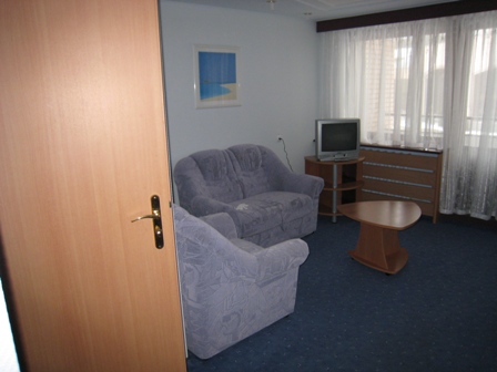Во всех номерах: санузел, холодильник, спутниковое ТВ. В номерах Люкс (103 кв.м): гостиная, столовая, спальня, кондиционер, ванная комната с «джакузи».