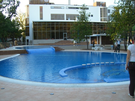 Спорт: закрытый подогреваемый бассейн с морской водой 25x12 м, тренажерный зал, теннисный корт, боулинг.