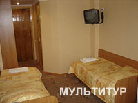 Стандарт 2-х местный – 1-о комнатный улучшенный номер площадью 14-18 кв. м. с удобствами (Т, У, Д). В номере набор мебели, ТВ, холодильник. Все номера с видом море. В корпусах № 2, 3 – балкон или лоджия. В корпусе № 1 – кондиционер. Дополнительное место - кресло-кровать.