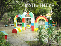 Пляж: Собственный, галечный, оборудованный теневыми навесами, в 100-150 м от корпусов.
